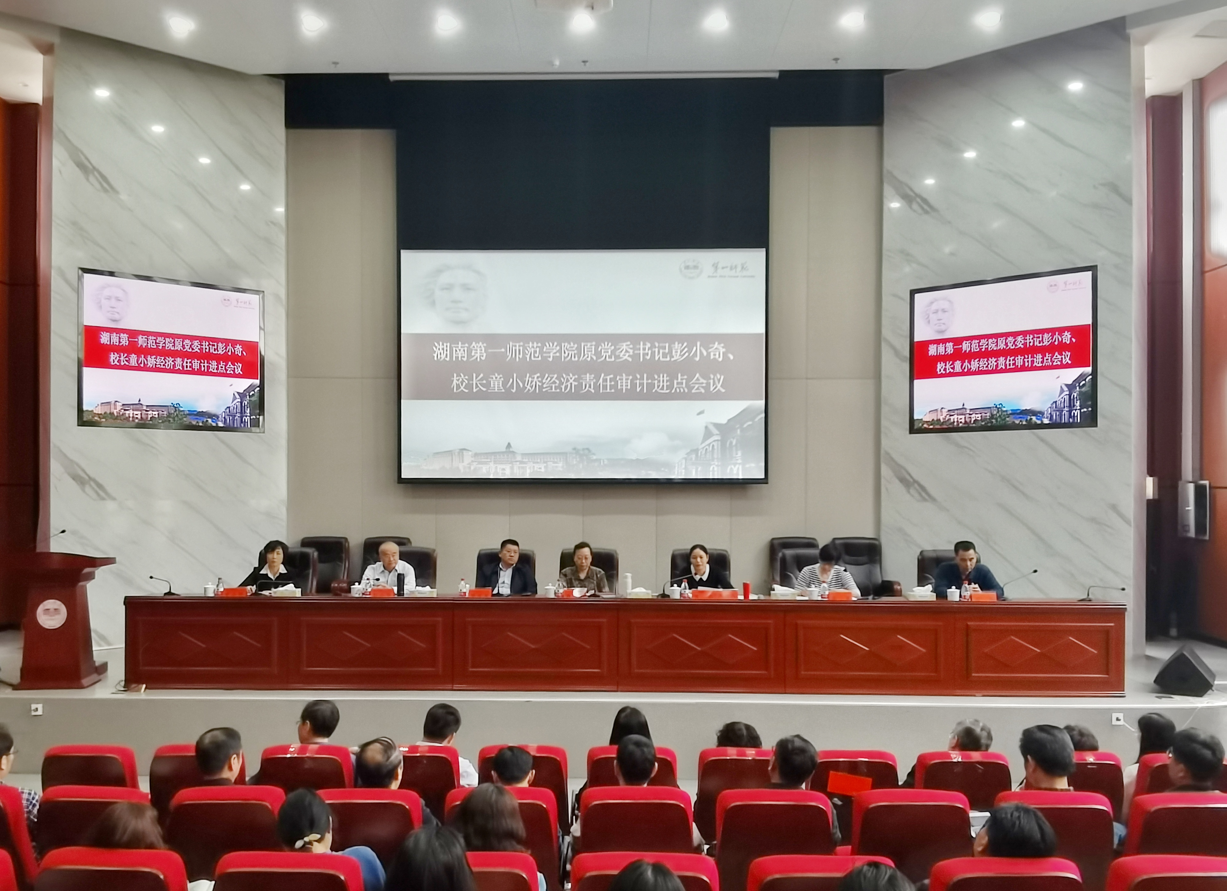 近日,湖南省审计厅二级巡视员肖黎率审计组进点湖南第一师范学院,对彭小奇任湖南第一师范学院党委书记、童小娇任院长期间经济责任履行情况进行审计。湖南第一师范学院党委书记罗成翼、院长童小娇、原党委书记彭小奇及学院相关人员出席会议。会议由行政事业审计三处处长黄非主持。