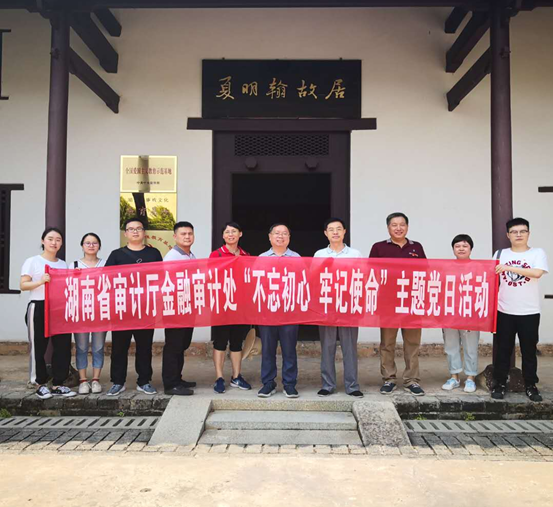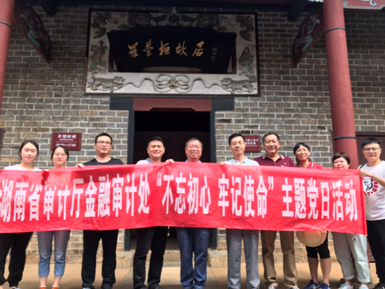 金融审计处党支部在耒阳开展现场审计已一个多月,审计组成员每天处于紧张、繁忙的工作中,加班加点,不辞辛劳。为在审计现场深入开展“不忘初心,牢记使命”主题教育,更加激发审计人员的工作积极性和热情,增强坚定履行审计职责的使命感、责任感。借助衡阳是众多革命先烈家乡的“优势”,在庆祝建党98周年的前夕,金融审计处党支部组织全体党员前往罗荣桓、夏明翰故居参观学习。大家瞻仰了罗荣桓、夏明翰故居,聆听讲解员介绍了罗荣桓元帅光辉灿烂的一生和夏明翰烈士忠贞不屈、大义凛然的英雄事迹,追忆了革命先烈为了人民幸福和民族复兴前仆后继、浴血奋战的艰辛历程,并在党旗下庄严宣誓,重温入党誓词,决心进一步坚定理想信念,传承红色基因,完成先辈未竟的事业。