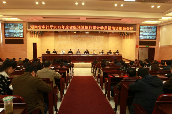 11月26日,湖南省审计厅召开2012年度省级预算执行审计工作暨培训会议,专题部署2012年省级预算执行审计工作,并组织参审人员学习《湖南省2012年度省级预算执行审计工作方案》。厅党组书记、厅长唐会忠出席动员大会并做重要讲话,厅党组成员、副厅长张晓菊作动员报告,全省各级审计机关全体干部职工参加了此次视频会议。