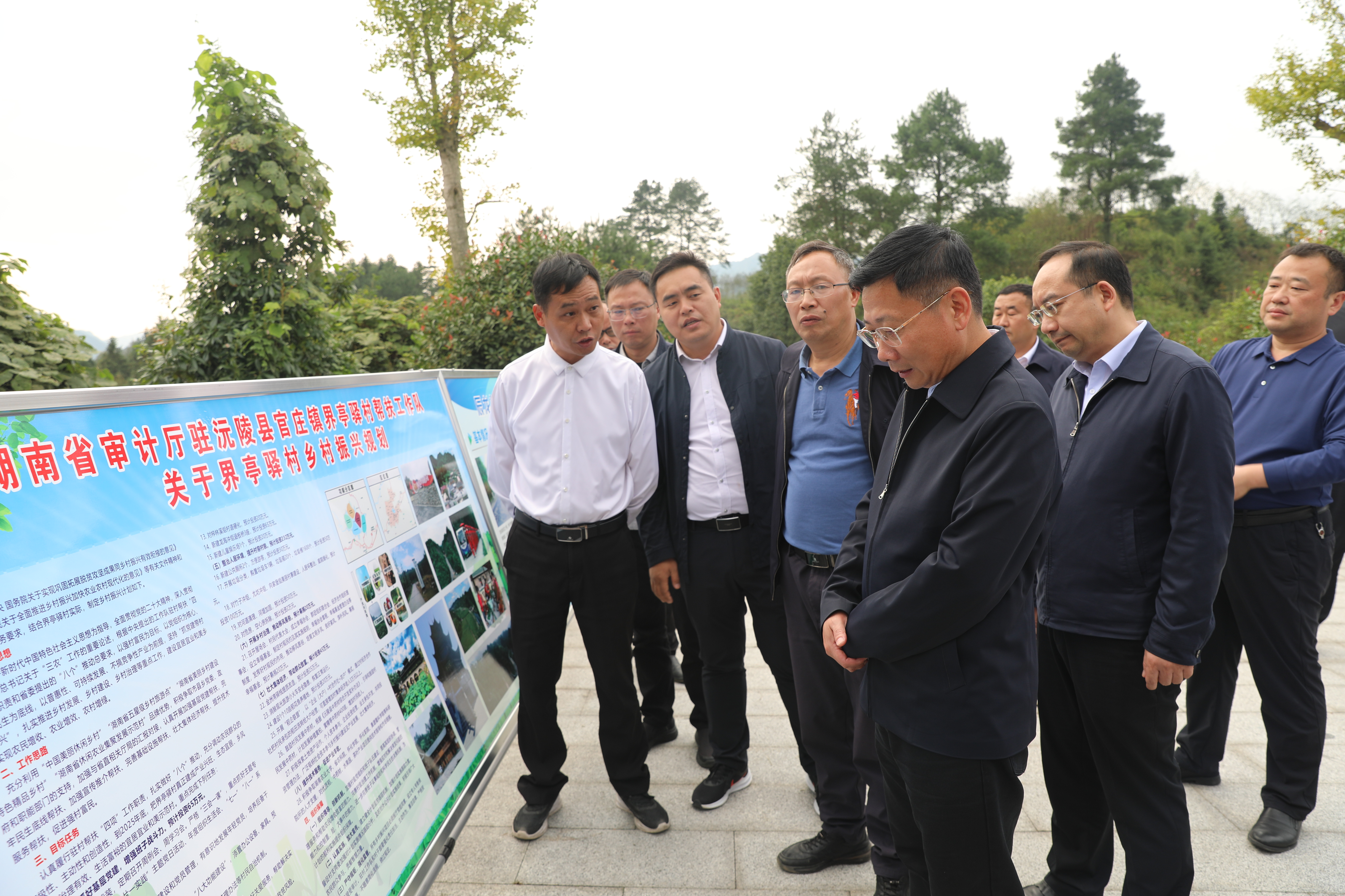 今年5月,省审计厅乡村振兴帮扶工作队正式入驻沅陵县官庄镇界亭驿村,开始了新一轮的乡村振兴工作。入驻5个月效果如何?乡村发展规划进度如何?如何进一步推进产业发展……带着这些牵挂,10月11日至12日,省委审计办主任,省审计厅党组书记、厅长陈博彰带队,深入对口帮扶点调研指导乡村振兴工作,厅党组成员、副厅长李绍辉陪同调研。